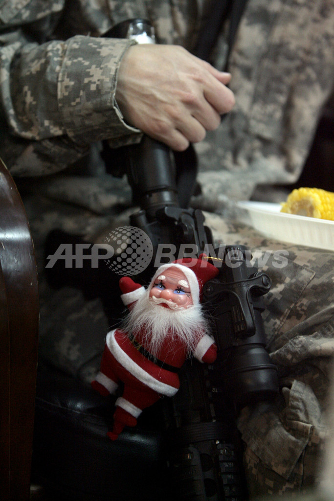 ニュース ライフ 駐イラク米兵たちのクリスマスイブ 2008年12月25日 14:38 発信地:バグダッド/イラク [ 中東・北アフリカ イラク ] このニュースをシェア ‹ › ❮ 6/6 ❯ イラク・バグダッド(Baghdad)のキャンプリバティー(Camp Liberty)で、米軍兵士の銃にぶら下がるサンタクロースの人形(2008年12月24日撮影)。(c)AFP/AHMAD AL-RUBAYE 画像作成中 ! 【12月25日 AFP】イラク・バグダッド(Baghdad)のキャンプリバティー(Camp Liberty)で24日、米軍兵士らがクリスマスイブを祝った。(c)AFP ライフ 一覧へ> メディア・報道関係・法人の方向け 写真・動画 購入のお問合せ>