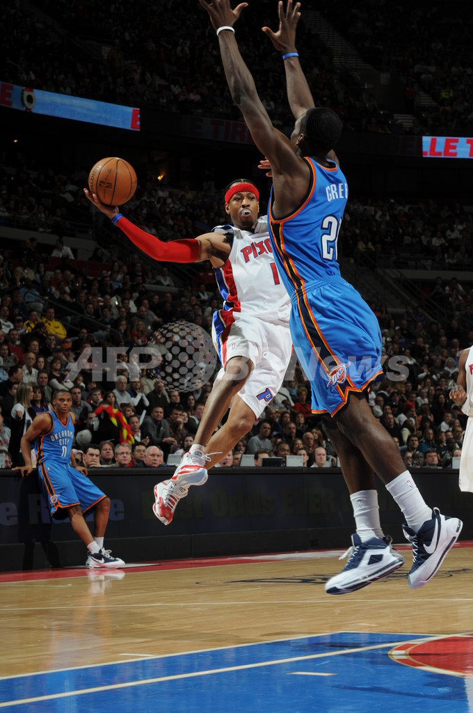 スポーツ バスケットボール ピストンズ ホームでサンダーに競り勝つ 2008年12月27日 13:56 発信地:オーバンヒルズ/米国 [ 北米 米国 ] このニュースをシェア ‹ › ❮ 2/13 ❯ オクラホマシティ・サンダー戦でジェフ・グリーン(%%Jeff Green%%)のディフェンスをひきつけてパスを出すデトロイト・ピストンズのアレン・アイバーソン(%%Allen Iverson%%)。(2008年12月25日撮影)(c)AFP/Getty Images/NBAE/D. Lippitt/Einstein 画像作成中 ! 【12月27日 AFP】08-09NBA、デトロイト・ピストンズ(Detroit Pistons)対オクラホマシティ・サンダー(Oklahoma City Thunder)。試合はピストンズが90-88でサンダーに競り勝った。(c)AFP/Getty Images バスケットボール 一覧へ> メディア・報道関係・法人の方向け 写真・動画 購入のお問合せ>
