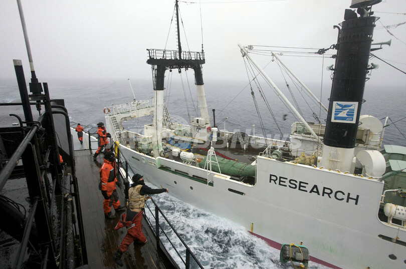 【12月27日 AFP】(写真追加)米環境保護団体「シー・シェパード(Sea Shepherd Conservation Society)」は26日、オーストラリア領海内で日本の調査捕鯨船団の目視専門船、海幸丸(Kaiko Maru、860トン)を追跡し、異臭のする瓶を投げ込む妨害活動を行ったと発表した。