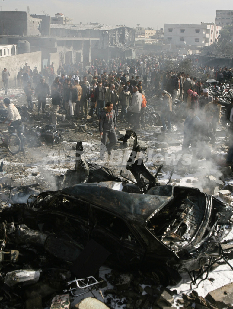 【12月27日 AFP】(一部更新)イスラエル軍は27日、パレスチナ自治区ガザ地区(Gaza Strip)を実効支配するイスラム原理主義組織ハマス(Hamas)の拠点を標的に大規模な空爆を行い、ガザ地区の当局者によると、少なくとも195人が死亡、約300人が負傷した。負傷者のうち約120人は重傷だという。がれきから遺体を収容する活動が続いており、死傷者数は増えるとみられる。