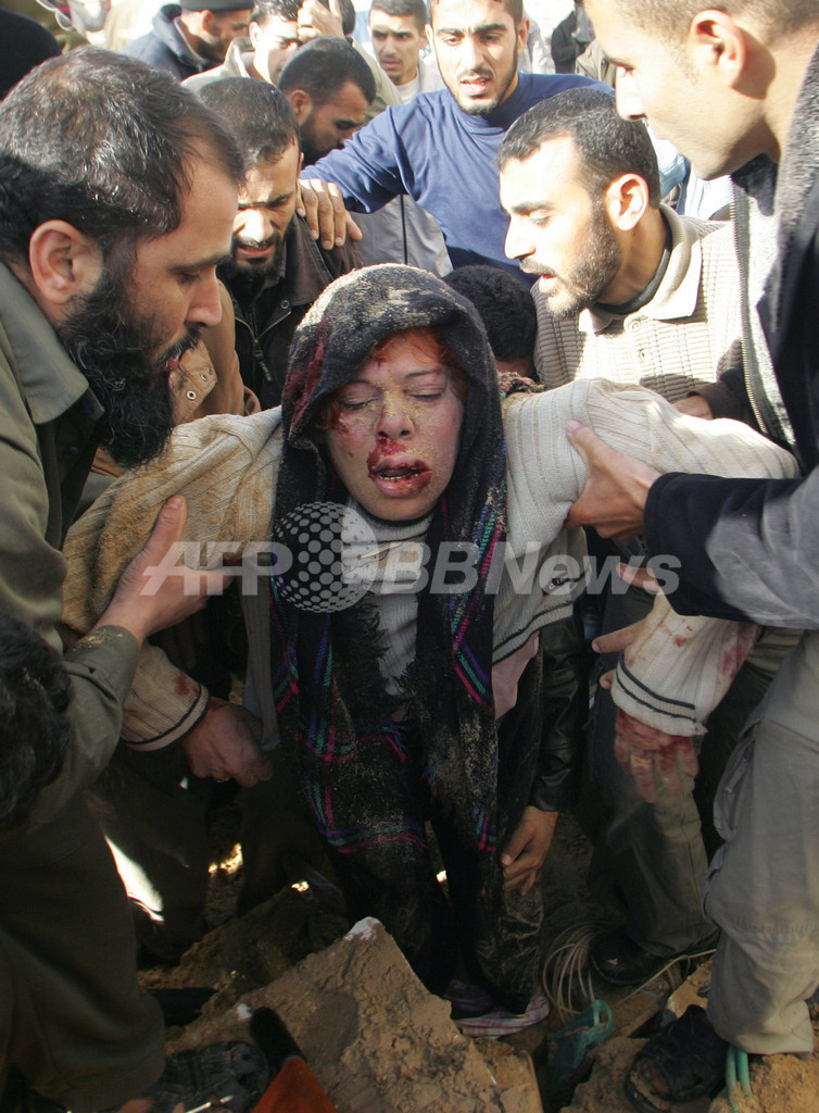 ニュース 戦争・紛争 空爆にさらされるガザ地区、人びとの怒りと涙 2008年12月29日 13:16 発信地:ガザ市/パレスチナ自治区 [ 中東・北アフリカ パレスチナ自治区 ] このニュースをシェア ‹ › ❮ 8/21 ❯ パレスチナ自治区ガザ市(Gaza City)で、イスラエルの空爆で破壊された建物から救出される女性。ガザ地区を実効支配するイスラム原理主義組織ハマス(Hamas)の掃討を掲げるイスラエルの空爆では、24時間で280人以上が死亡した。イスラエルは陸上部隊の投入も示唆している(2008年12月28日撮影)。(c)AFP/YASSER SAYMEH 画像作成中 ! 【12月29日 AFP】イスラエルは28日、パレスチナ自治区ガザ地区(Gaza Strip)に大規模な空爆を行い、空爆開始後から24時間で280人以上が死亡している。(c)AFP 戦争・紛争 一覧へ> メディア・報道関係・法人の方向け 写真・動画 購入のお問合せ>