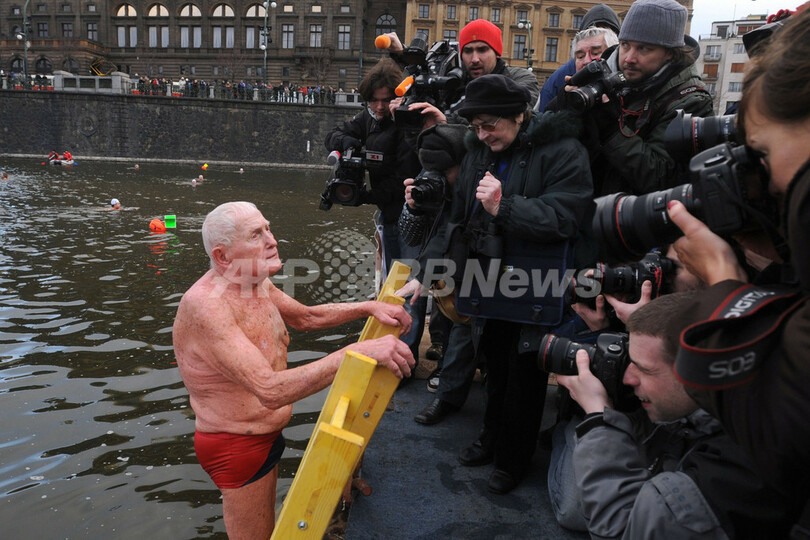 ニュース ライフ クリスマス水泳大会、94歳男性も冷水の中へ チェコ 2008年12月29日 19:38 発信地:プラハ/ハンガリー [ ヨーロッパ ハンガリー ] このニュースをシェア ‹ › ❮ 1/4 ❯ チェコ・プラハ(Prague)のブルタバ川(Vltava River)で開かれたクリスマス寒中水泳大会に94歳で参加したLadislav Nicekさん(2008年12月26日撮影)。(c)AFP/MICHAL CIZEK 画像作成中 ! 【12月29日 AFP】チェコ・プラハ(Prague)のブルタバ川(Vltava River)で26日、恒例のクリスマス寒中水泳大会が開かれた。なかでも94歳で参加したLadislav Nicekさんが、観客らの注目を集めた。(c)AFP ライフ 一覧へ> メディア・報道関係・法人の方向け 写真・動画 購入のお問合せ>