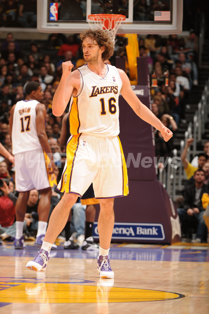 【12月29日 AFP】08-09NBA、ロサンゼルス・レイカーズ(Los Angeles Lakers)対ゴールデンステイト・ウォリアーズ(Golden State Warriors)。試合はレイカーズが130-113で勝利し、4連勝を飾った。