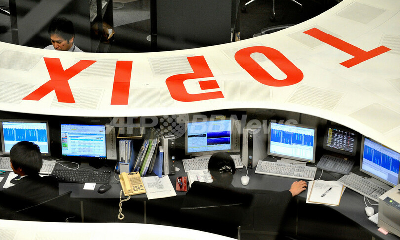 東証株価指数(TOPIX)は、前日比4.47ポイント(0.52%)高の859.24で取引を終えたが、前年末比では41.77%の大幅安を記録した。(c)AFP