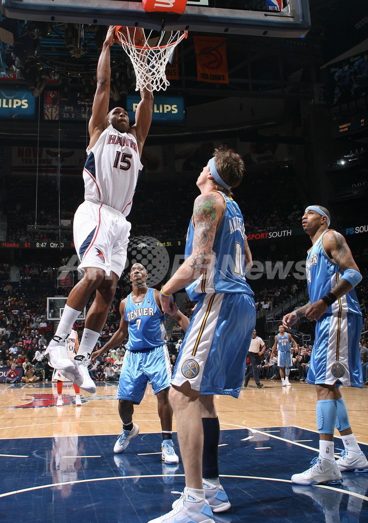 スポーツ バスケットボール ホークス ナゲッツ下しシーズン20勝目 2008年12月30日 16:45 発信地:アトランタ/米国 [ 北米 米国 ] このニュースをシェア ‹ › ❮ 2/6 ❯ デンバー・ナゲッツ戦でダンクシュートを決めるアトランタ・ホークスのアル・ホーフォード(%%Al Horford%%、左)。(2008年12月29日撮影)(c)AFP/Getty Images/NBAE/Scott Cunningham 画像作成中 ! 【12月30日 AFP】08-09NBA、アトランタ・ホークス(Atlanta Hawks)対デンバー・ナゲッツ(Denver Nuggets)。試合はジョー・ジョンソン(Joe Johnson)が25得点、マイク・ビビー(Mike Bibby)が20得点を記録し、ホークスが109-91で勝利を収めた。ホークスは1987-88年シーズン以来初めて新年を迎える前に20勝に到達した。(c)AFP バスケットボール 一覧へ> メディア・報道関係・法人の方向け 写真・動画 購入のお問合せ>