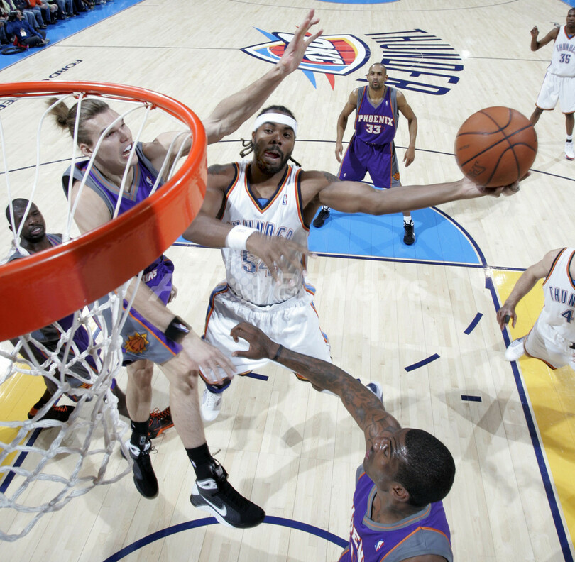 【12月30日AFP】08-09NBA、オクラホマシティ・サンダー(Oklahoma City Thunder)対フェニックス・サンズ(Phoenix Suns)。試合はサンズが110-102でサンダーを退けた。