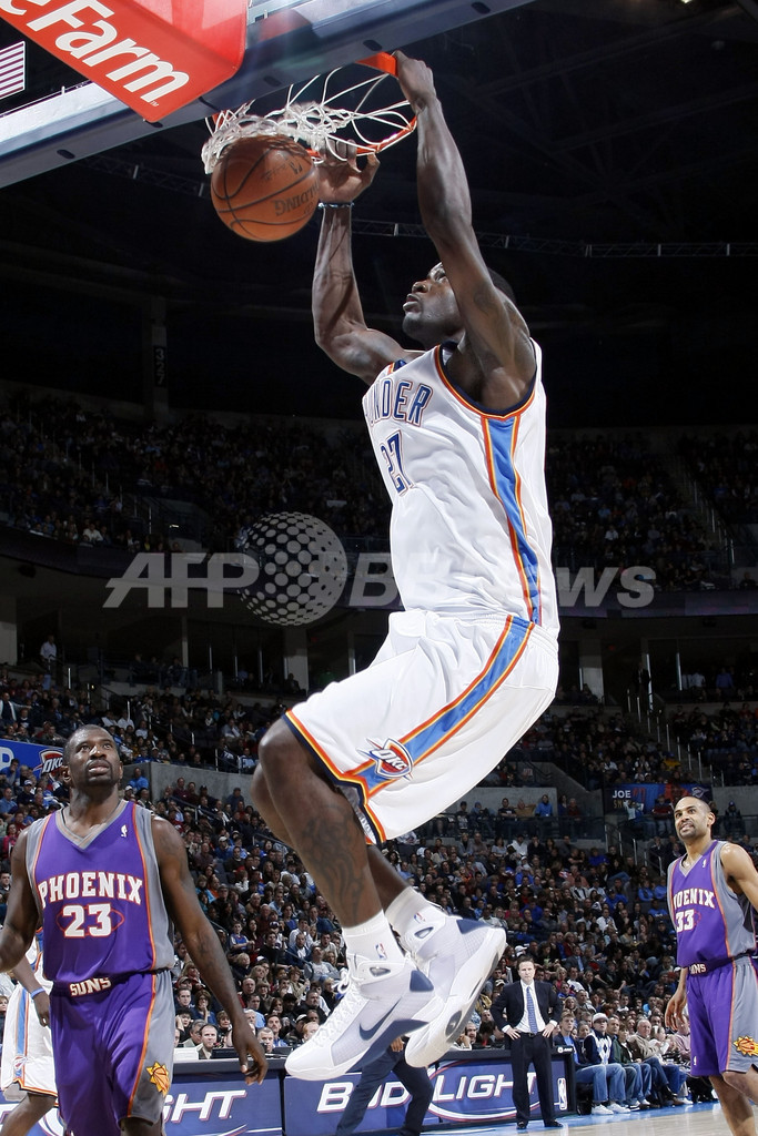 【12月30日AFP】08-09NBA、オクラホマシティ・サンダー(Oklahoma City Thunder)対フェニックス・サンズ(Phoenix Suns)。試合はサンズが110-102でサンダーを退けた。