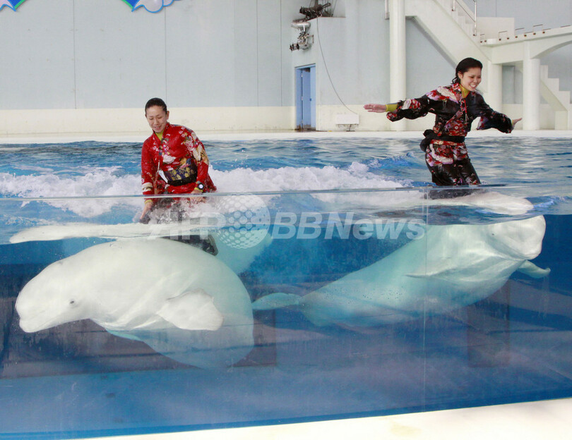 新年に向け準備万端、シロイルカのショー
