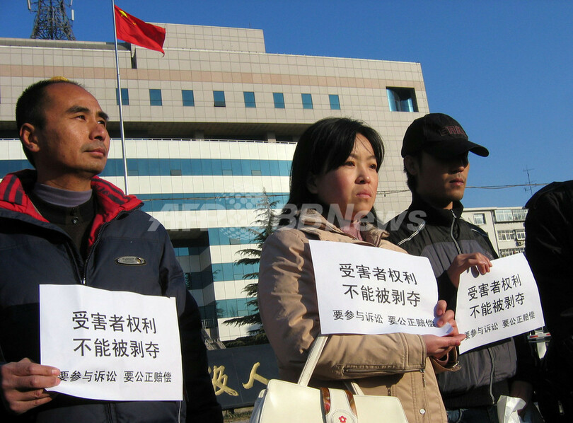 海外メディアが法廷に入ることは認められなかったが、中国の国営メディアとテレビは法廷内での取材が認められた。中国では裁判の多くは非公開で1日で結審し、数日後に判決が言い渡されることが多い。(c)AFP