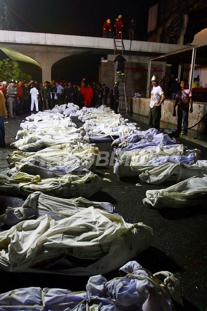 【1月1日 AFP】(写真追加)タイ・バンコク(Bangkok)のエカマイ(Ekkamai)地区にある人気ナイトクラブ「サンティカ(Santika)」で1日午前零時から1時にかけ、大規模な火災が発生し、新年を祝っていた客などのうち少なくとも60人が死亡、212人が負傷した。救急隊員が明らかにした。