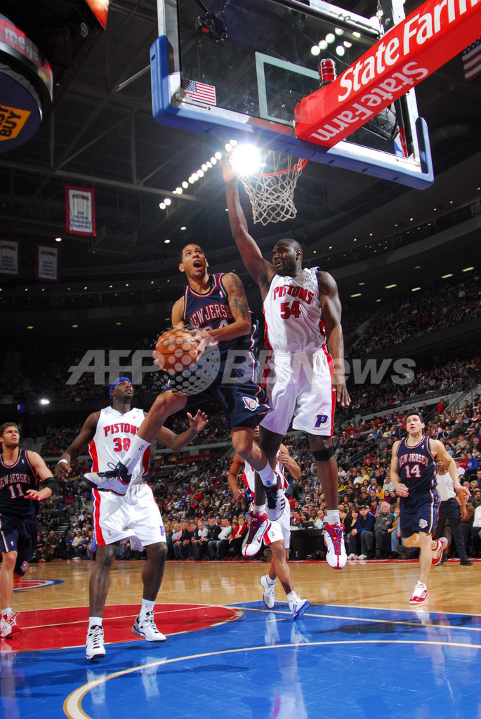 【1月1日AFP】08-09NBA、デトロイト・ピストンズ(Detroit Pistons)対ニュージャージー・ネッツ(New Jersey Nets)。試合はピストンズが83-75でネッツを下し、連勝を5に伸ばした。