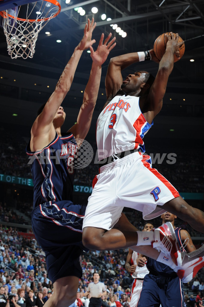 【1月1日AFP】08-09NBA、デトロイト・ピストンズ(Detroit Pistons)対ニュージャージー・ネッツ(New Jersey Nets)。試合はピストンズが83-75でネッツを下し、連勝を5に伸ばした。