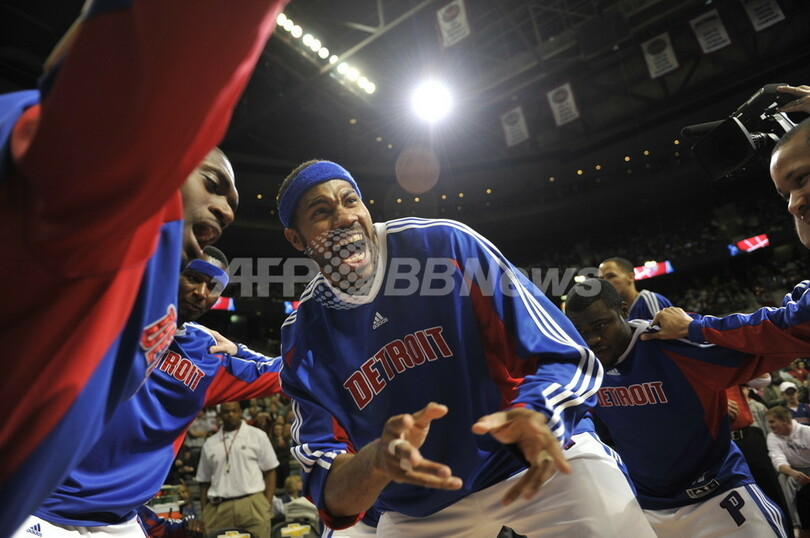 【1月1日AFP】08-09NBA、デトロイト・ピストンズ(Detroit Pistons)対ニュージャージー・ネッツ(New Jersey Nets)。試合はピストンズが83-75でネッツを下し、連勝を5に伸ばした。