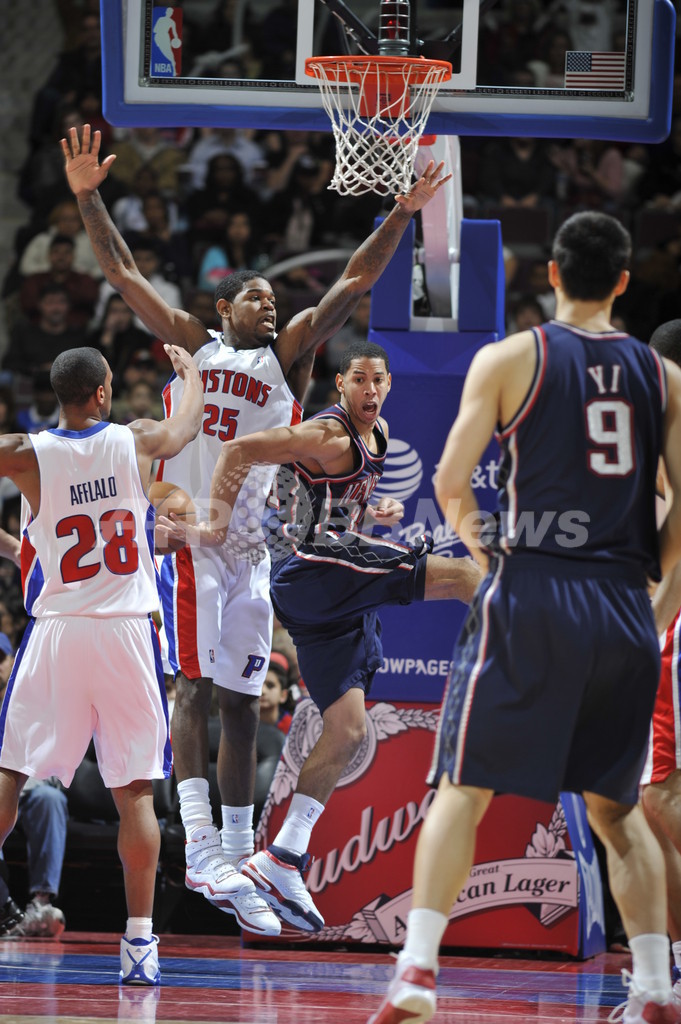 【1月1日AFP】08-09NBA、デトロイト・ピストンズ(Detroit Pistons)対ニュージャージー・ネッツ(New Jersey Nets)。試合はピストンズが83-75でネッツを下し、連勝を5に伸ばした。
