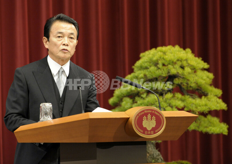 【1月4日 AFP】(写真追加)麻生太郎(Taro Aso)首相は4日午前、記者会見を行い、経済問題への対応と予算と関連法案の成立に集中する必要性を強調し、少なくとも数か月は解散・総選挙を行う考えがないと表明した。