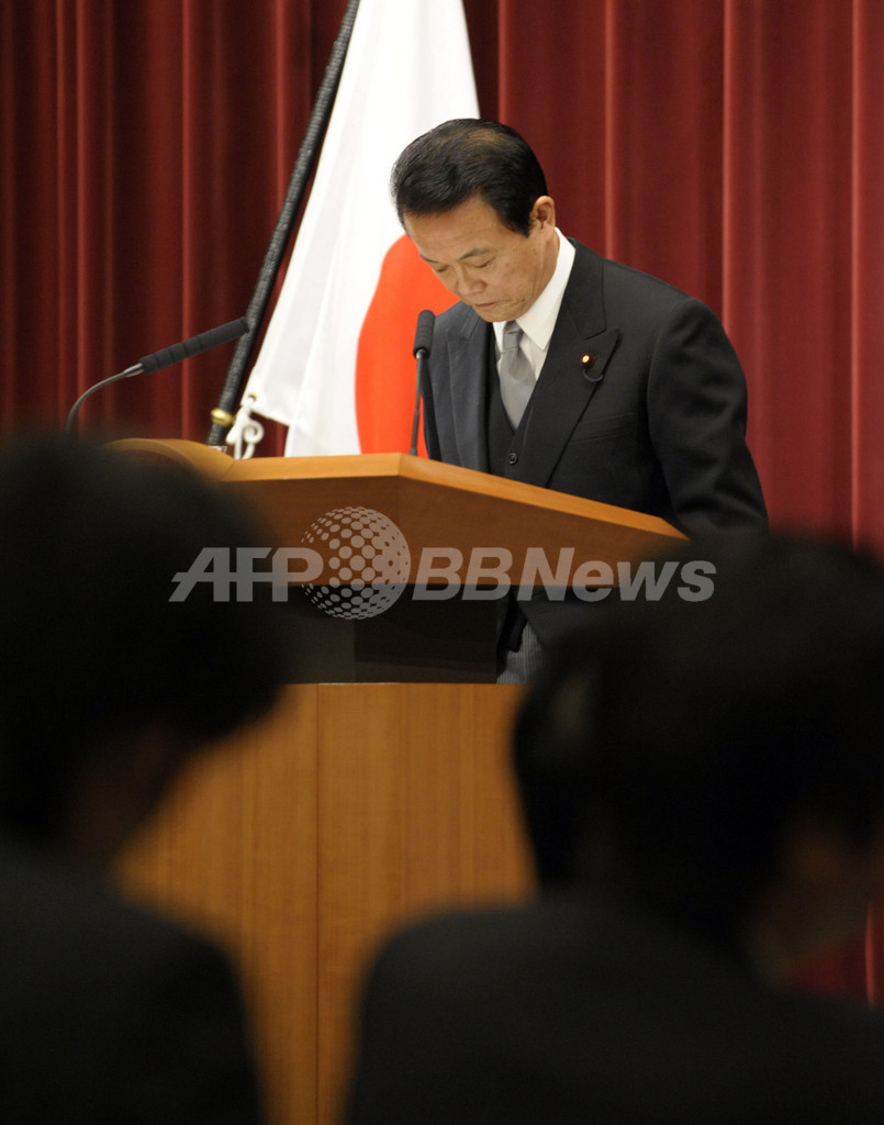 【1月4日 AFP】(写真追加)麻生太郎(Taro Aso)首相は4日午前、記者会見を行い、経済問題への対応と予算と関連法案の成立に集中する必要性を強調し、少なくとも数か月は解散・総選挙を行う考えがないと表明した。