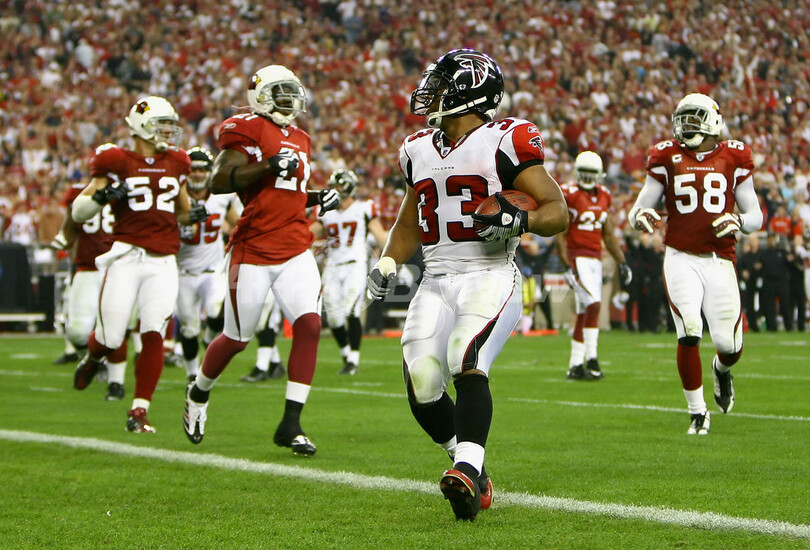スポーツ アメリカンフットボール カーディナルス ファルコンズ下しカンファレンス準決勝へ 2009年1月4日 14:56 発信地:グレンデール/米国 [ 北米 米国 ] このニュースをシェア ‹ › ❮ 10/14 ❯ NFCプレーオフ1回戦のアリゾナ・カーディナルス戦で第2クォーターに7ヤードのタッチダウンランを決めるアトランタ・ファルコンズのマイケル・ターナー(%%Michael Turner%%)。(2009年1月3日撮影)(c)AFP/Getty Images/Jeff Gross 画像作成中 ! 【1月4日 AFP】08NFL・NFCプレーオフ1回戦、アリゾナ・カーディナルス(Arizona Cardinals)対アトランタ・ファルコンズ(Atlanta Falcons)。試合はカーディナルスが30-24で勝利し、カンファレンス準決勝進出を決めた。(c)AFP/Getty Images アメリカンフットボール 一覧へ> メディア・報道関係・法人の方向け 写真・動画 購入のお問合せ>