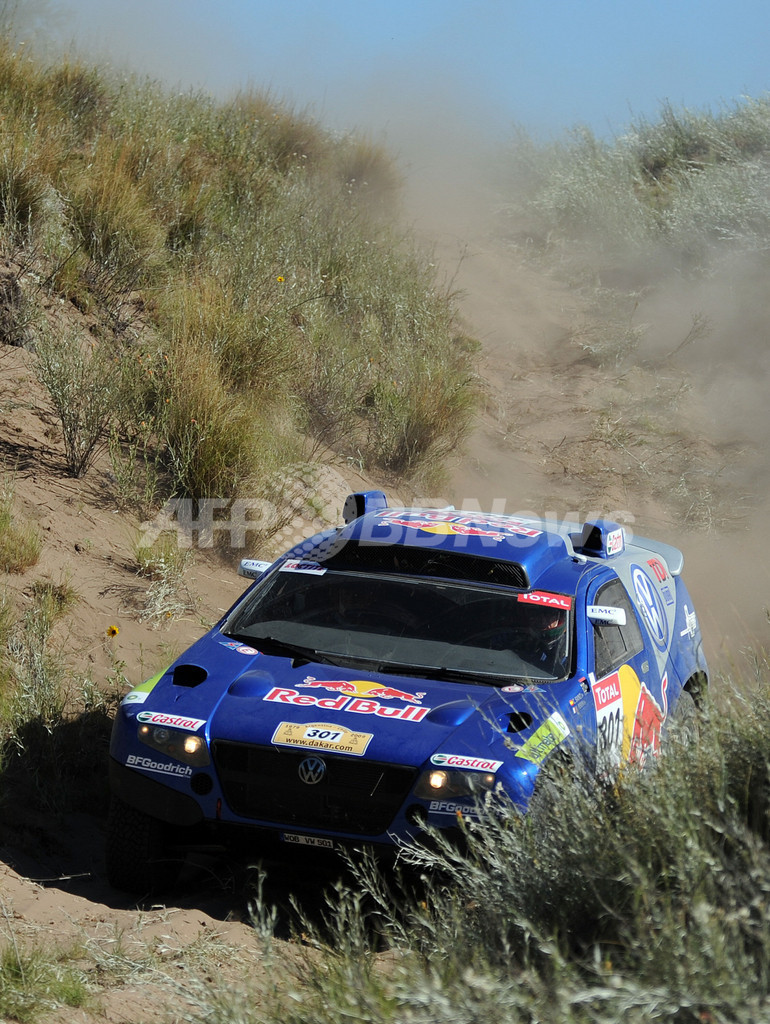 【1月5日 AFP】ダカールラリー2009(Dakar Rally 2009)四輪部門第2ステージ(サンタ・ロサからプエルト・マドリン、競争区間237キロメートル、総距離837キロメートル)。フォルクスワーゲン(Volkswagen)のカルロス・サインツ(Carlos Sainz、スペイン)は、1時間56分14でステージ優勝を飾り、合計タイムを4時間34分46秒とし総合首位に立った。