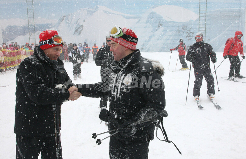 大統領を8年間務めたプーチン氏は、首相就任後も多大な影響力を行使し続けており、大統領に返り咲く野心を捨てていないとも噂されている。一方のメドべージェフ大統領は、「わたしは誰からの指図も受けない」と明言している。権力の分担が謎に包まれている2人の関係性については、今年もさまざまに憶測されそうだ。(c)AFP