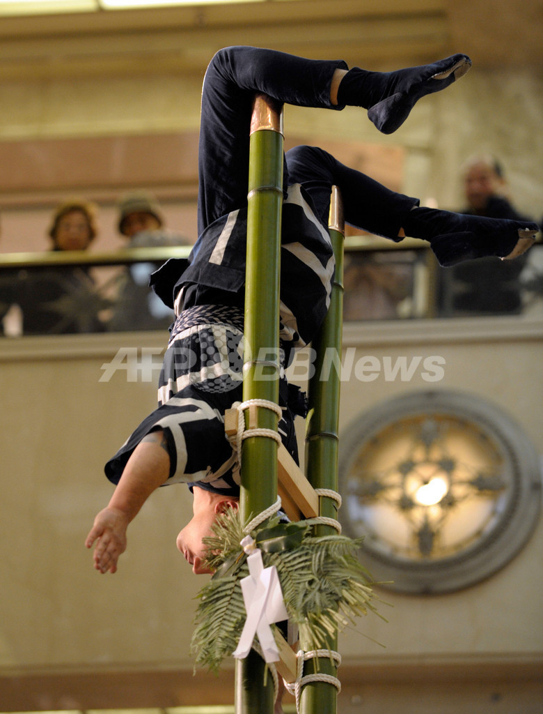 ニュース ライフ 日本橋三越本店で新春恒例「はしご乗り」 2009年1月5日 15:43 発信地:東京 [ アジア・オセアニア 東京 ] このニュースをシェア ‹ › ❮ 1/3 ❯ 東京・日本橋三越(Mitsukoshi)本店で、伝統的な江戸の火消し装束に身を包み10メートルのはしごの上でパフォーマンスを行う消防隊員(2009年1月4日撮影)。(c)AFP/TOSHIFUMI KITAMURA 画像作成中 ! 【1月5日 AFP】東京・日本橋三越(Mitsukoshi)本店で4日、江戸消防記念会による「はしご乗り」が行われ、訪れた買い物客たちの目を楽しませた。(c)AFP ライフ 一覧へ> メディア・報道関係・法人の方向け 写真・動画 購入のお問合せ>