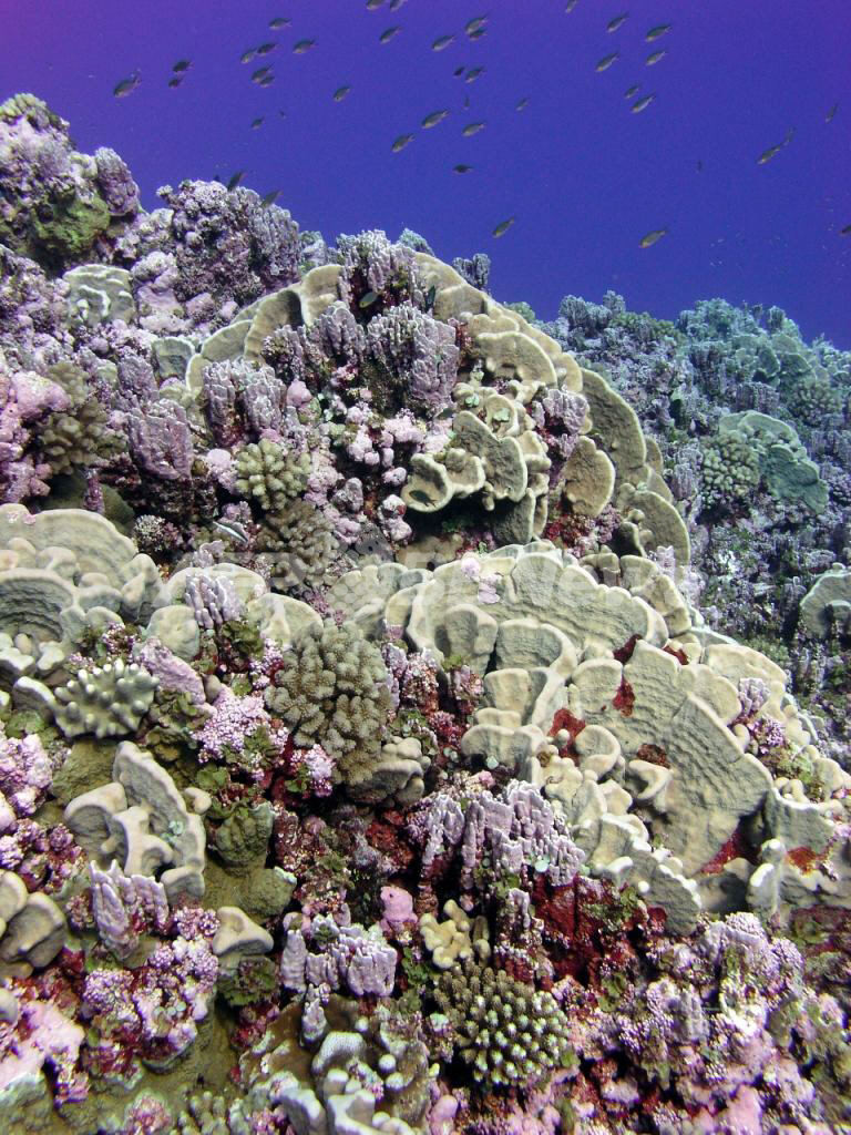 最後のローズ環礁の「Rose Atoll Marine National Monument(ローズ環礁国定記念物)」は、米領サモアにある小規模ながら密度の濃い、まさにサンゴ色のサンゴ礁として知られる。周辺には巨大なオオシャコガイやブダイ、さらにサンゴ礁に住むサメが多数生息しており、ザトウクジラやパイロットクジラ、ネズミイルカなども見られるという。(c)AFP/Kerry Sheridan