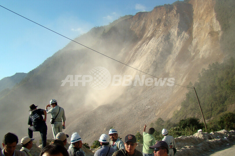 地滑りは、アルタベラパス(Alta Verapaz)とQuicheを結ぶ道路が以前発生した地滑りで通行できなくなったことから、迂回(うかい)ルートとして多くの日雇い労働者が利用していた道路で発生したという。(c)AFP