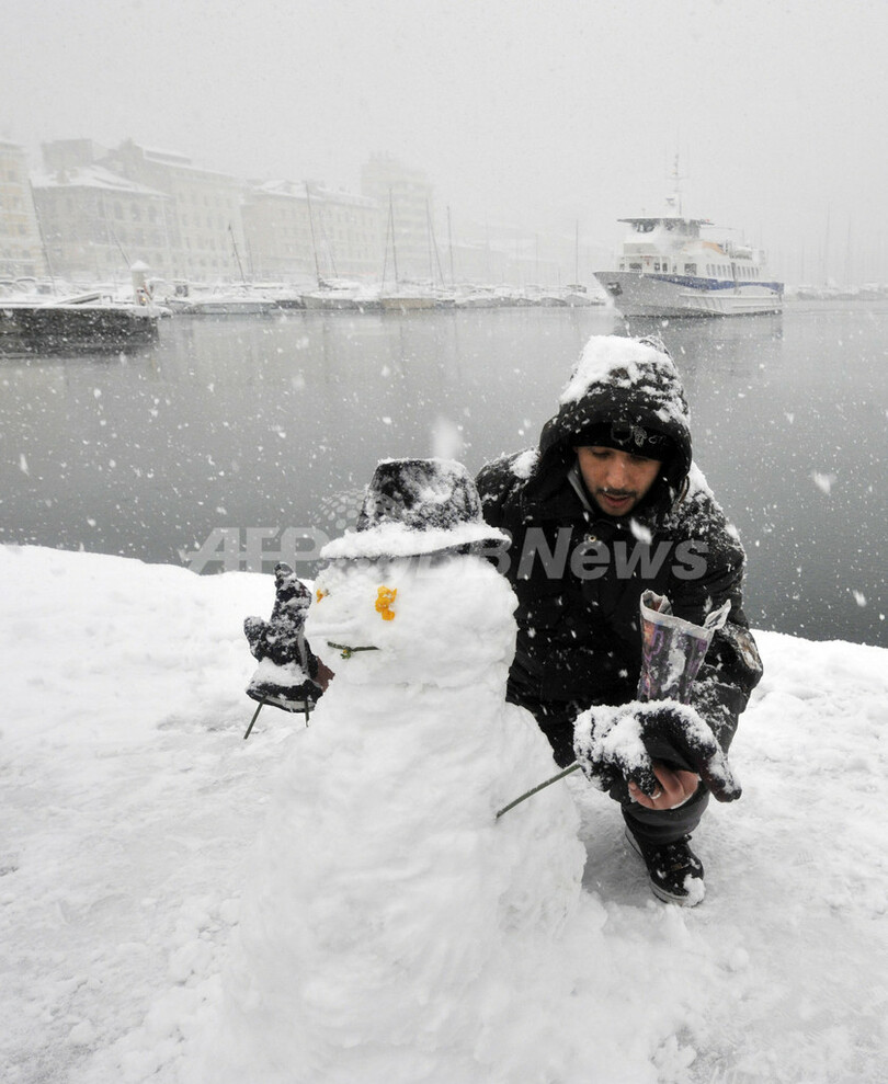 ニュース 社会 寒波のフランス、観光名所も雪景色 2009年1月8日 14:15 発信地:フランス [ ヨーロッパ フランス ] このニュースをシェア ‹ › ❮ 7/34 ❯ こんこんと雪が降り続くフランス南部マルセイユ(Marseille)で雪だるまを作る男性(2009年1月7日撮影)。(c)AFP/ANNE-CHRISTINE POUJOULAT 画像作成中 ! 【1月8日 AFP】欧州各地では6-7日の気温が急激に冷え込み、フランスでは各地で大雪を記録した。(c)AFP 社会 一覧へ> メディア・報道関係・法人の方向け 写真・動画 購入のお問合せ>