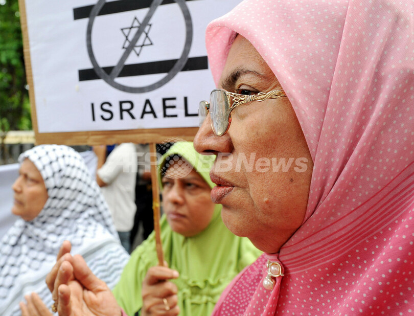 【1月8日 AFP】インドネシア・中スラウェシ(Central Sulawesi)州パル(Palu)で8日、イスラム系学生らが米ファーストフード大手「ケンタッキーフライドチキン(Kentucky Fried Chicken、KFC)」店舗前で、イスラエルのパレスチナ自治区ガザ地区(Gaza Strip)攻撃に対する抗議活動を行った。