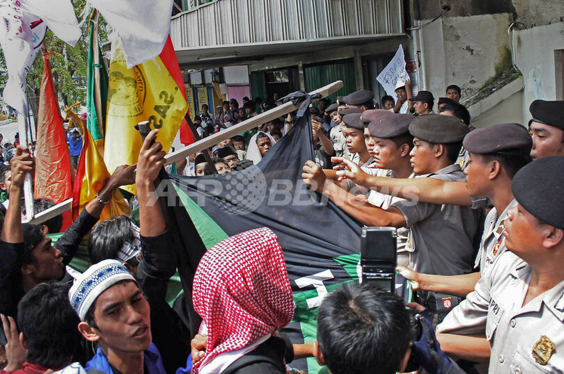 【1月8日 AFP】インドネシア・中スラウェシ(Central Sulawesi)州パル(Palu)で8日、イスラム系学生らが米ファーストフード大手「ケンタッキーフライドチキン(Kentucky Fried Chicken、KFC)」店舗前で、イスラエルのパレスチナ自治区ガザ地区(Gaza Strip)攻撃に対する抗議活動を行った。