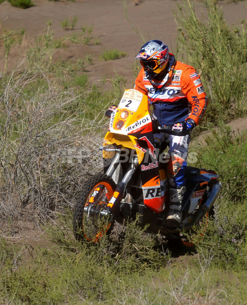 【1月9日 AFP】ダカールラリー2009(Dakar Rally 2009)二輪部門第6ステージ(サンラファエルからメンドサ、競争区間178キロメートル、総距離625キロメートル)。KTMのマルク・コマ(Marc Coma、スペイン)は、2時間5分29秒を記録しステージを2位で終え、合計タイム23時間43分41秒で総合首位を守った。