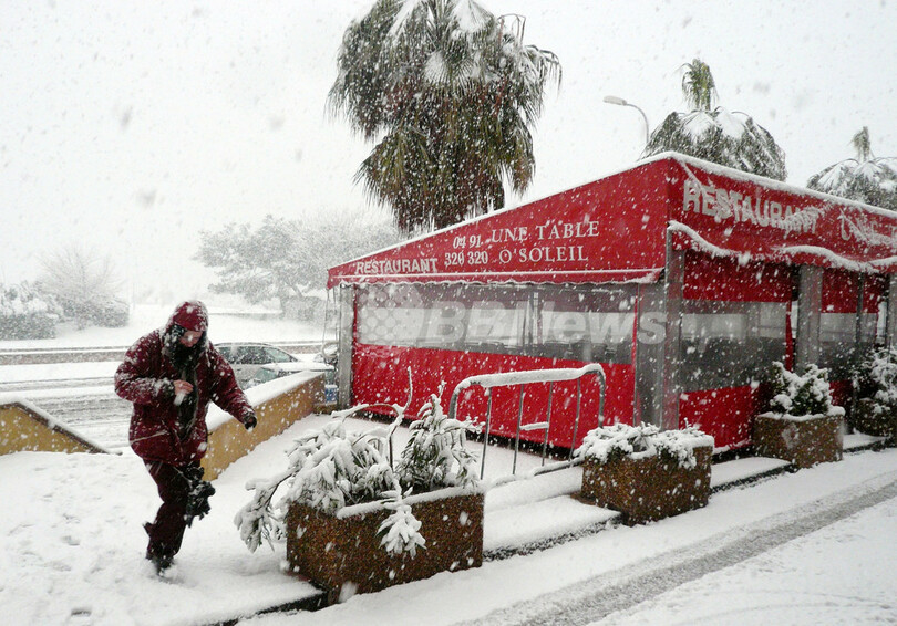 大雪に見舞われた地中海北部沿岸では、仏マルセイユ(Marseille)で港湾機能が停止し、日中まで空港が閉鎖。夜間には1万世帯が停電し、道路や列車のダイヤが大幅に乱れたため学校や保育園、大学などが休みとなった。