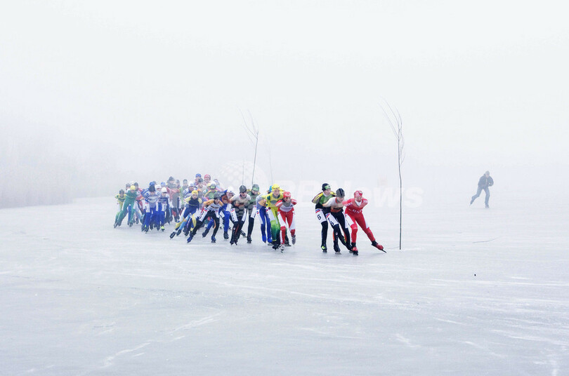 また、オランダのアムステルダム(Amsterdam)北東部にある自然保護区では、凍結した湖を会場に、12年ぶりのスケート競技会が行われた。(c)AFP