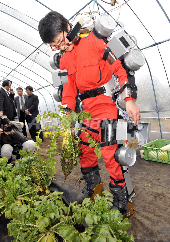 ニュース 環境・科学 東京農工大の農作業用パワーアシストスーツ 2009年1月9日 18:29 発信地:東京 [ アジア・オセアニア 東京 ] このニュースをシェア ‹ › ❮ 2/6 ❯ 東京都小金井市の東京農工大学(Tokyo Agriculture and Technology University)で、同大の遠山茂樹(Shigeki Toyama)教授らが開発した農作業用のパワーアシストスーツを着用し、ダイコン収穫のデモンストレーションを行う学生(2009年1月9日撮影)。(c)AFP/Yoshikazu TSUNO 画像作成中 ! 【1月9日 AFP】(一部訂正)東京農工大学(Tokyo Agriculture and Technology University)の遠山茂樹(Shigeki Toyama)教授らは9日、東京都小金井市の同大学で農作業用のパワーアシストスーツを公開し、収穫作業のデモンストレーションを行った。収穫や剪定(せんてい)時の労力が軽減されるという。(c)AFP 環境・科学 一覧へ> メディア・報道関係・法人の方向け 写真・動画 購入のお問合せ>