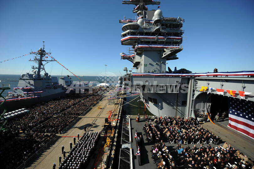 現大統領はあいさつで、第2次大戦中には海軍パイロット、1989-93年には大統領を務めた父親の業績をたたえ、「幸せな人生を歩み、望むものはほぼすべて手に入れてきた男に何を贈るべきかと考えた末、空母を思いついた」と述べた。