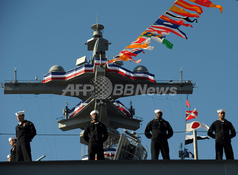 現大統領はあいさつで、第2次大戦中には海軍パイロット、1989-93年には大統領を務めた父親の業績をたたえ、「幸せな人生を歩み、望むものはほぼすべて手に入れてきた男に何を贈るべきかと考えた末、空母を思いついた」と述べた。