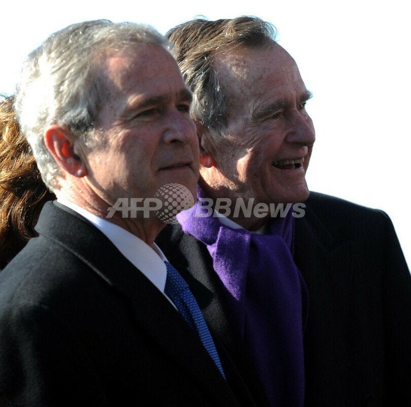 【1月11日 AFP】ジョージ・H・W・ブッシュ(George H.W. Bush)元米大統領の名を冠した米海軍の最新の原子力空母「ジョージ・H・W・ブッシュ(George H.W. Bush)」の就役式が10日、バージニア(Virginia)州ノーフォーク基地(Naval Station Norfolk)で行われ、元米大統領、ジョージ・W・ブッシュ(George W. Bush)現大統領父子らが出席した。