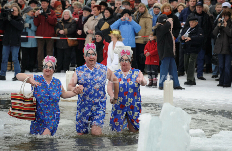ニュース ライフ 古代の神々の姿で寒中水泳、ドイツ 2009年1月11日 20:25 発信地:ベルリン/ドイツ [ ヨーロッパ ドイツ ] このニュースをシェア ‹ › ❮ 2/2 ❯ ドイツの首都ベルリン(Berlin)のオランケ湖(Orankesee)で10日、毎年恒例の寒中水泳大会が開催された。今年のテーマは「オリンポスの神々」。古代世界の神々などの仮装をした寒中水泳クラブのメンバーらが冬の湖に飛び込んだ。(c)AFP/DDP/CLEMENS BILAN 画像作成中 ! 【1月11日 AFP】ドイツの首都ベルリン(Berlin)のオランケ湖(Orankesee)で10日、毎年恒例の寒中水泳大会が開催された。今年のテーマは「オリンポスの神々」で、古代世界の神々の仮装をした寒中水泳クラブのメンバーらが冬の湖に飛び込んだ。(c)AFP ライフ 一覧へ> メディア・報道関係・法人の方向け 写真・動画 購入のお問合せ>