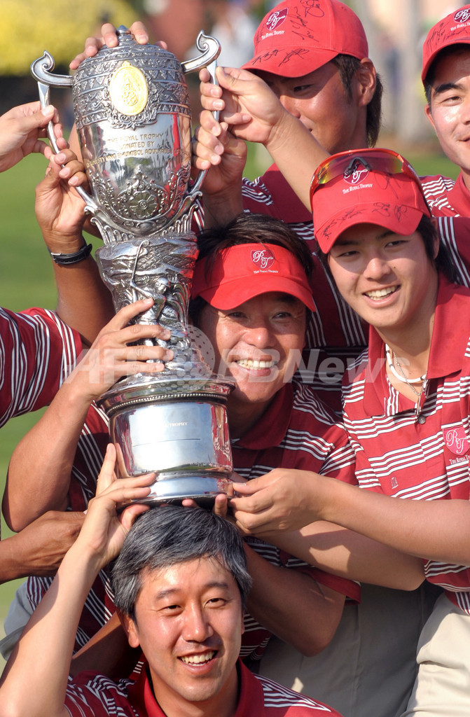 【1月11日 AFP】(写真追加)男子ゴルフ、欧州選抜とアジア選抜の対抗戦、第3回ロイヤルトロフィー(The Royal Trophy 2009)最終日・シングルス。アジア選抜が通算10-6で欧州選抜を下した。