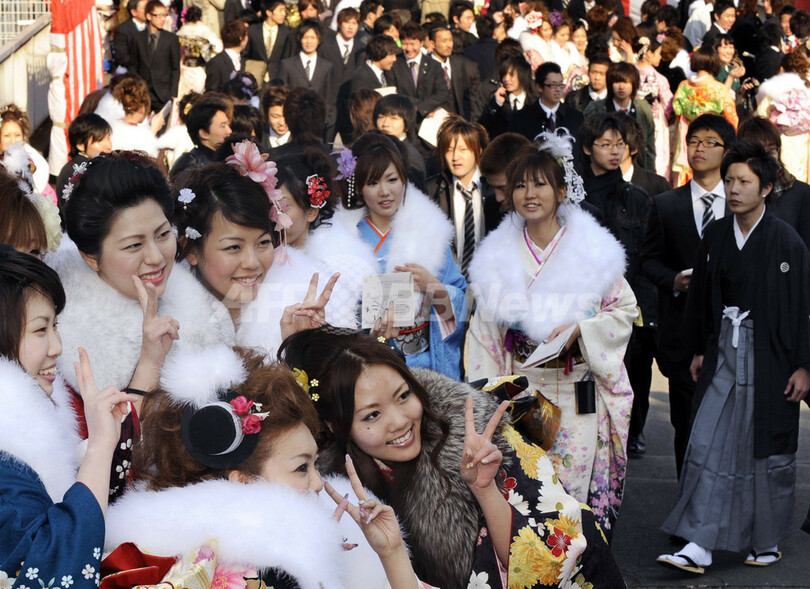 ニュース ライフ こぼれ話 成人式、晴れ着でローラーコースター! 2009年1月12日 21:23 発信地:東京 [ アジア・オセアニア 東京 ] このニュースをシェア ‹ › ❮ 2/3 ❯ 東京・池袋にある遊園地「としまえん(Toshimaen)」で開かれた成人式で記念撮影する晴れ着姿の新成人たち(2009年1月12日撮影)。(c)AFP/Kazuhiro NOGI 画像作成中 ! 【1月12日 AFP】12日、 東京・池袋にある遊園地「としまえん(Toshimaen)」で成人式が開かれ、式後には女性たちが晴れ着姿でローラーコースターに乗るなどレジャーを楽しんだ。(c)AFP ライフ 一覧へ> メディア・報道関係・法人の方向け 写真・動画 購入のお問合せ>