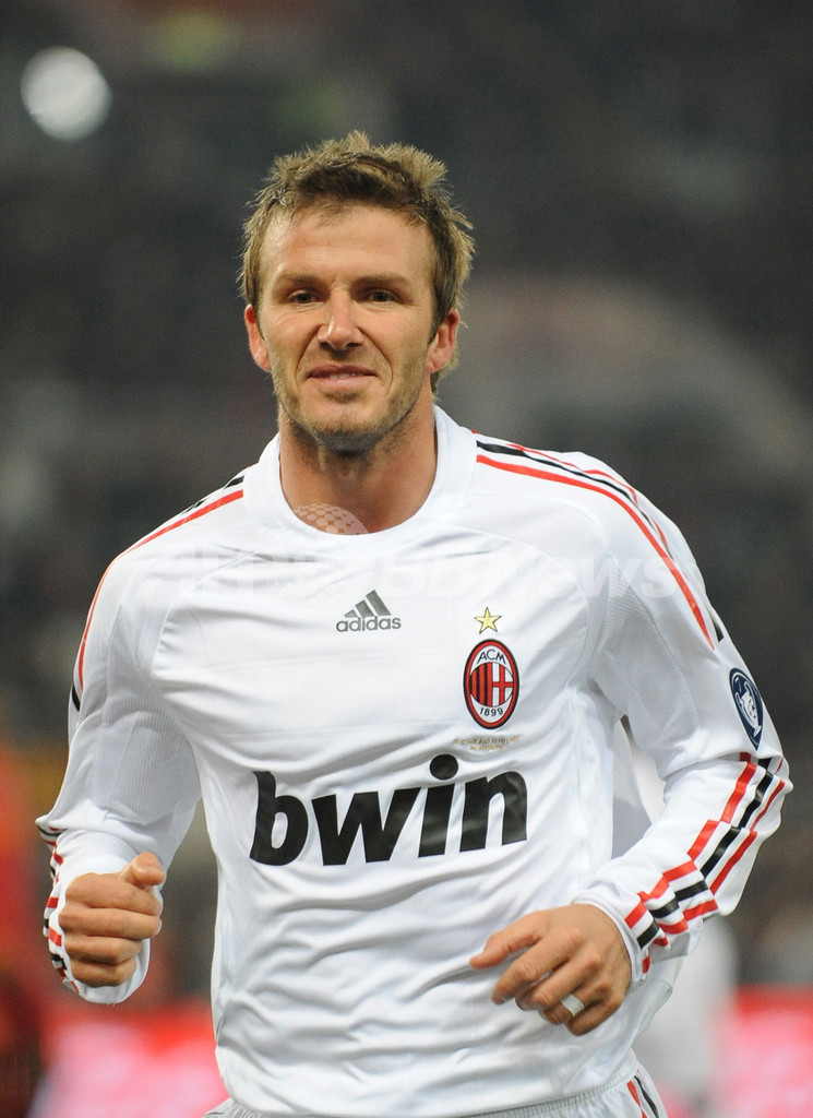 米メジャーリーグサッカー(MLS)のロサンゼルス・ギャラクシー(Los Angeles Galaxy)からレンタル移籍でミランに加入したベッカムは、ASローマ(AS Roma)とリーグ戦で予想外の先発出場を果たし公式戦のデビューを飾り、試合では職人らしさを見せていた。(c)AFP