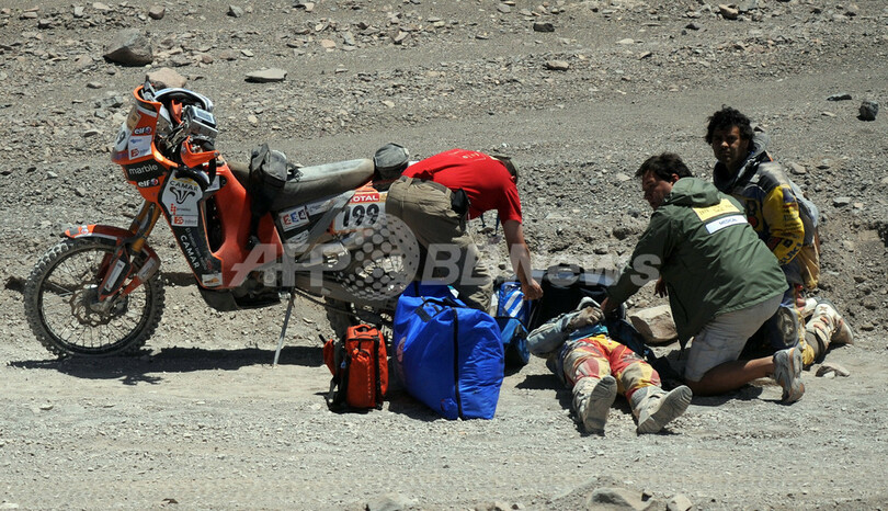 【1月14日 AFP】ダカールラリー(Dakar Rally 2009)の大会主催者は13日、同日に行われた二輪部門第10ステージ(コピアポからコピアポ、競争区間476キロメートル、総距離496キロメートル)でKTMのクリストバル・ゲレーロ(Cristobal Guerrero)が激しく落車し、意識不明であることを発表した。検査の結果、ゲレーロは生命の危機にさらされていることが分かった。