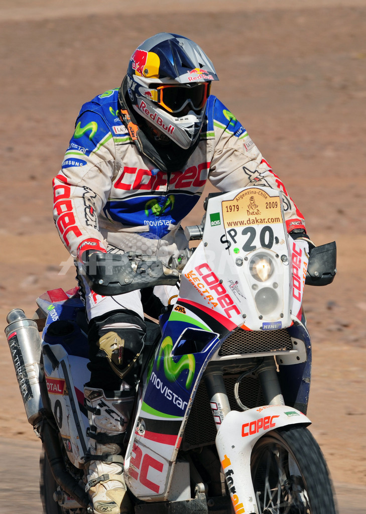 【1月14日 AFP】ダカールラリー2009(Dakar Rally 2009)二輪部門第10ステージ(コピアポからコピアポ、競争区間476キロメートル、総距離496キロメートル)。KTMのマルク・コマ(Marc Coma、スペイン)は、6時間47分43秒で同ステージを7位で終え、合計タイムを43時間52分30秒として総合首位を守った。