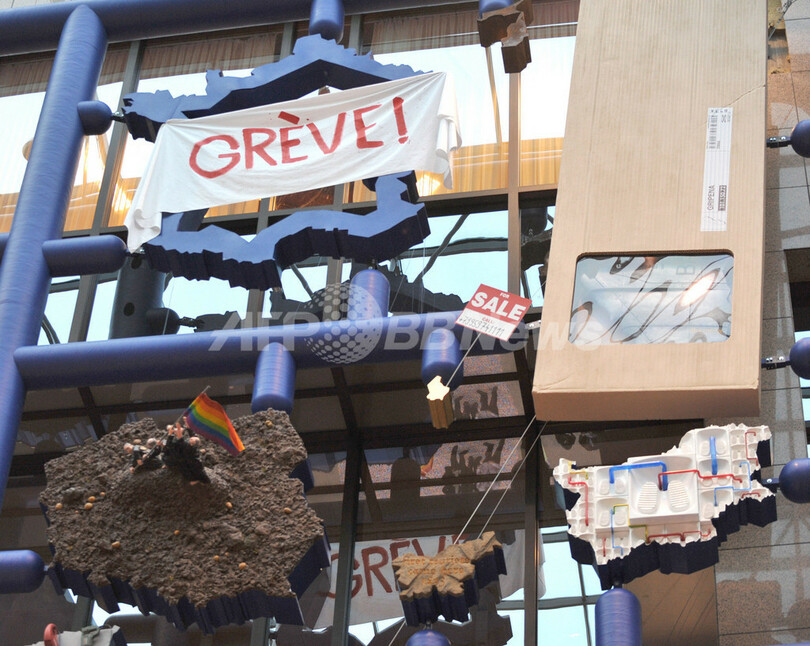 同作品は、欧州委員会本部「ユストゥス・リプシウス・ビル(Justus Lipsius building)」のアトリウムに展示されている。(c)AFP