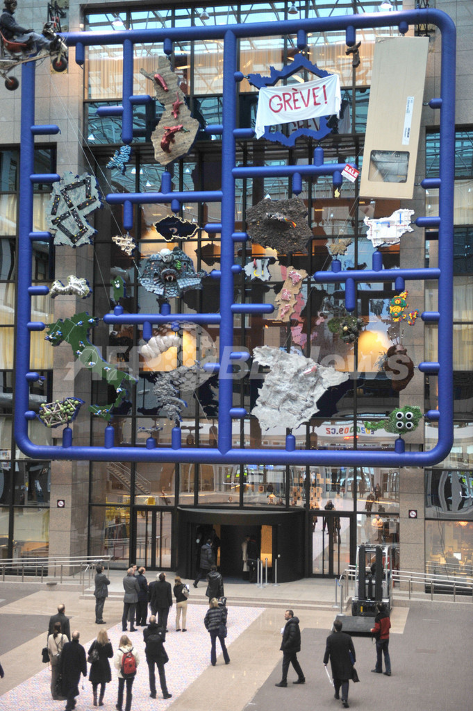 同作品は、欧州委員会本部「ユストゥス・リプシウス・ビル(Justus Lipsius building)」のアトリウムに展示されている。(c)AFP