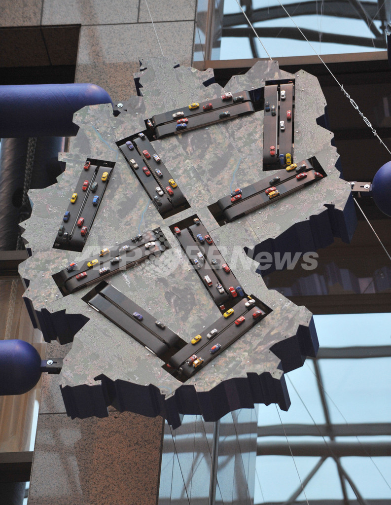 同作品は、欧州委員会本部「ユストゥス・リプシウス・ビル(Justus Lipsius building)」のアトリウムに展示されている。(c)AFP