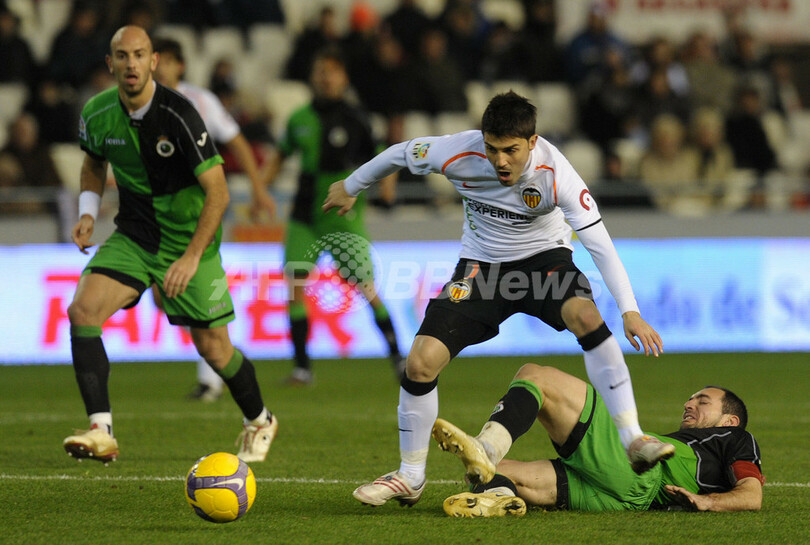 スポーツ サッカー バレンシア 延長でラシン下し国王杯準々決勝進出 2009年1月15日 10:12 発信地:バレンシア/スペイン [ ヨーロッパ スペイン ] このニュースをシェア ‹ › ❮ 7/12 ❯ ラシン・サンタンデールのペドロ・ムニティス(%%Pedro Munitis%%、右下)のチェックを受けるバレンシアのダビド・ビジャ(%%David Villa%%)。(2009年1月14日撮影)(c)AFP/DIEGO TUSON 画像作成中 ! 【1月15日 AFP】サッカースペイン国王杯(Copa del Rey 2008-09)5回戦。バレンシア(Valencia CF)対ラシン・サンタンデール(Racing Santander)第2戦。試合は1-1の引き分けに終わり、2試合合計スコアが2-2の同点となったため行われた延長戦をバレンシアが3-1で制し、準々決勝進出を決めた。(c)AFP サッカー 一覧へ> メディア・報道関係・法人の方向け 写真・動画 購入のお問合せ>