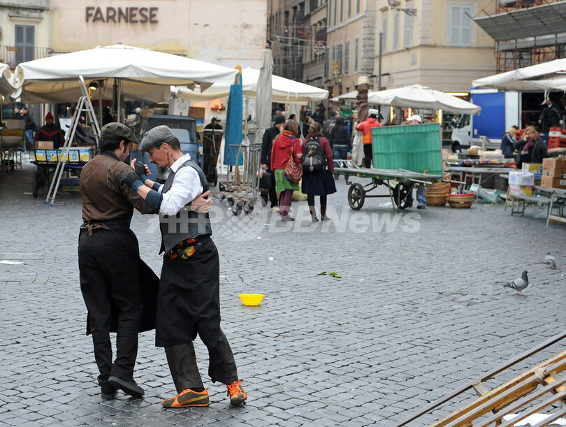 ニュース ライフ こぼれ話 「暇だからタンゴでも踊るか、兄弟」 ローマのカンポ・ディ・フィオーリ広場 2009年1月16日 1:55 発信地:ローマ/イタリア [ ヨーロッパ イタリア ] このニュースをシェア ‹ › ❮ 2/2 ❯ イタリア・ローマ(Rome)のカンポ・ディ・フィオーリ(Campo dei Fiori)広場の食料品市場で、タンゴを踊る2人の男性。(c)AFP/TIZIANA FABI 画像作成中 ! 【1月16日 AFP】イタリア・ローマ(Rome)のカンポ・ディ・フィオーリ(Campo dei Fiori)広場の食料品市場で、タンゴを踊る2人の男性。(c)AFP ライフ 一覧へ> メディア・報道関係・法人の方向け 写真・動画 購入のお問合せ>