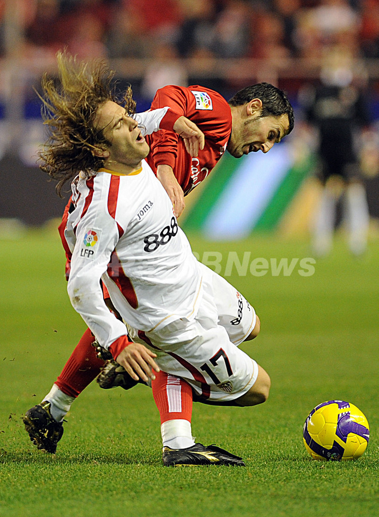 スポーツ サッカー セビージャ ホームでヌマンシアに勝利 2009年1月18日 12:00 発信地:セビリア/スペイン [ ヨーロッパ スペイン ] このニュースをシェア ‹ › ❮ 3/5 ❯ ヌマンシアのチョミン・ナゴーレ(%%Txomin Nagore%%、右)と競り合い転倒するセビージャFCのディエゴ・カペル(%%Diego Capel%%)。(2009年1月17日撮影)(c)AFP/CRISTINA QUICLER 画像作成中 ! 【1月18日 AFP】08-09スペイン1部リーグ第19節、セビージャFC(Sevilla FC)対ヌマンシア(CD Numancia)。試合はセビージャが1-0で勝利を収めた。(c)AFP サッカー 一覧へ> メディア・報道関係・法人の方向け 写真・動画 購入のお問合せ>