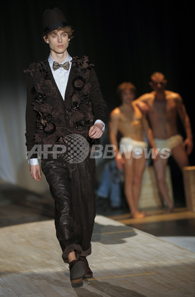 【1月19日 AFP】イタリア・ミラノ市内で1月17日から20日まで09/10年秋冬ミラノ・メンズコレクション(09/10 AW Milano Men's Collection)が開かれている。18日には、 マウリツィオ・モディカ(Maurizio Modica) とピエールフランチェスコ・ジグリオッティ(Pierfrancesco Gigliotti)が手掛ける「フランキー・モレロ(Frankie Morello)」が新作を発表した。(c)AFP