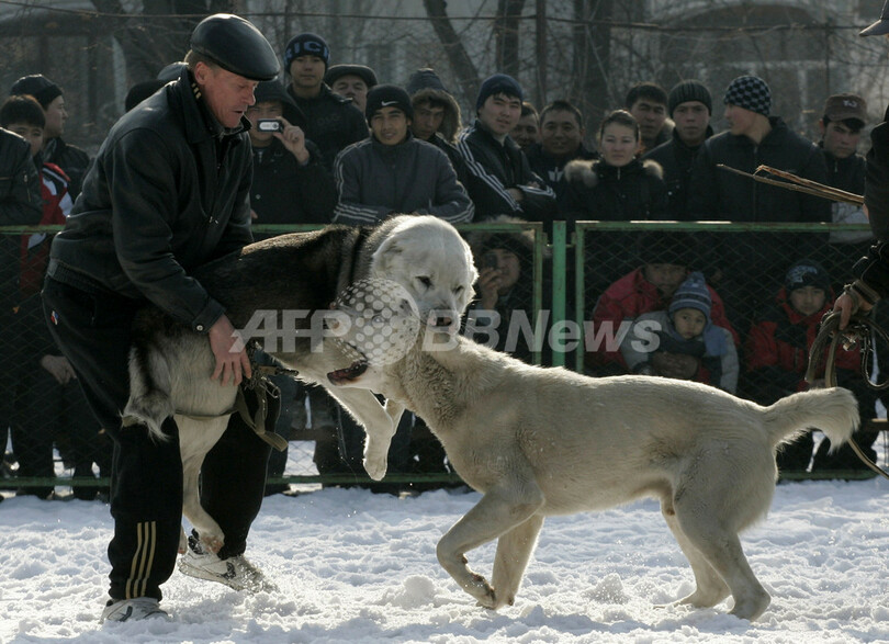 ニュース ライフ キルギスの闘犬大会 2009年1月19日 18:38 発信地:ビシケク/キルギス [ ロシア・CIS キルギス ] このニュースをシェア ‹ › ❮ 6/6 ❯ キルギスの首都ビシケク(Bishkek)で開催された闘犬大会の様子(2009年1月18日撮影)。(c)AFP/VYACHESLAV OSELEDKO 画像作成中 ! 【1月19日 AFP】キルギスの首都ビシケク(Bishkek)で18日、地元ブリーダー団体によって闘犬大会が開催され、50人近くの参加者が自慢の愛犬を披露した。(c)AFP ライフ 一覧へ> メディア・報道関係・法人の方向け 写真・動画 購入のお問合せ>